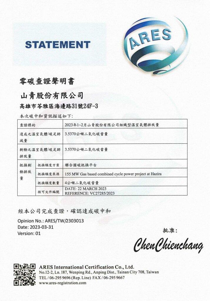 したがって、山青有限公司は、地球村の一員として企業の社会的責任と義務を果たし、地球を保護する責任と持続可能な経営の概念を実践しなければならないという信念を堅持し、地球温暖化の進行を遅らせるための温室効果ガス排出量の把握と抑制により、エネルギーの節約と地球生態環境の維持という持続可能な開発目標の達成が期待されています。